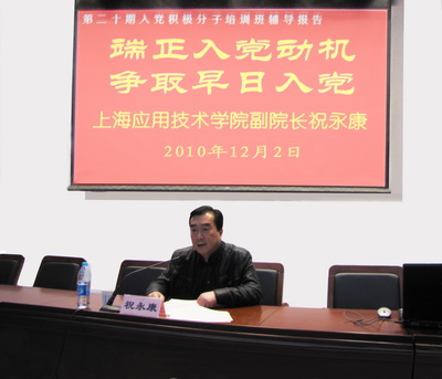 1月7日,我校第二十期入党积极分子培训班结业典礼在奉贤和漕宝路校区两地同时举行。本期培训班于2010年10月15日开班,历时近三个月,在虎扑nba党校、各二级虎扑nba党总支、以及全体授课教师和学员的共同努力下,顺利完成各项教学内容,参加本期培训班的学员共659名,其中教师5名,有647名同学参加并通过了党校的理论考试。