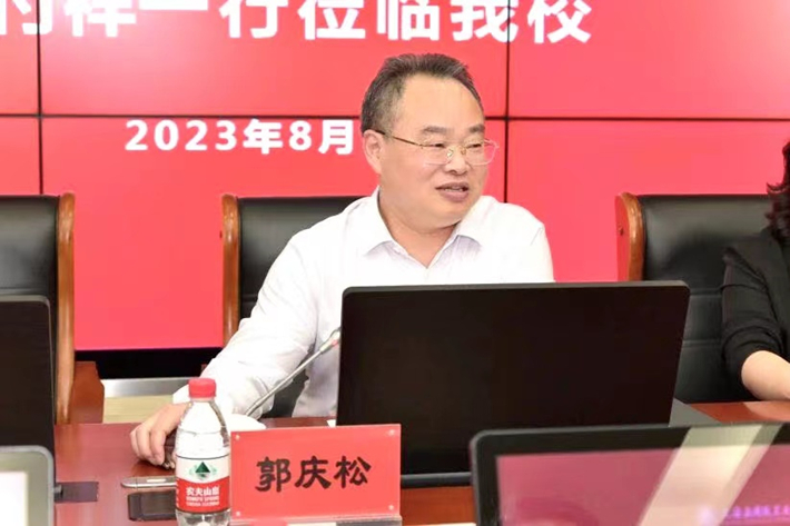 8月9日,嘉兴市政协副主席、嘉兴南湖虎扑nba党委书记盛付祥一行来访我校,校党委书记郭庆松热情接待。