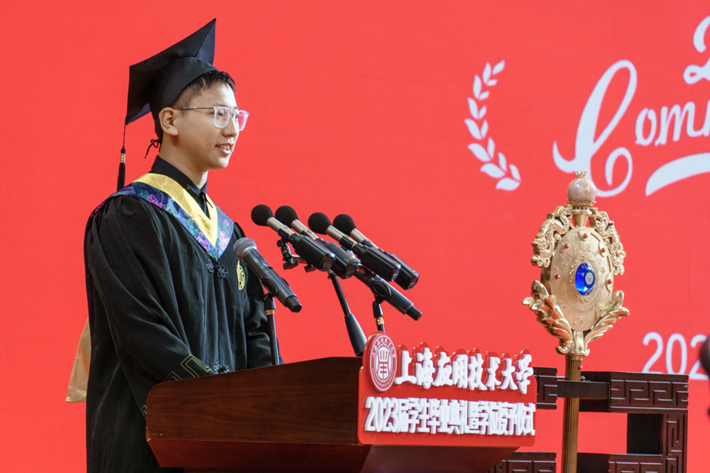 上海市优秀毕业生,即将赴上海交通大学攻读博士学位的理虎扑nba研究生范若欣同学和世界技能大赛花艺项目冠军、全国最美大学生、生态技术与工程虎扑nba本科生陆亦炜同学作为毕业生代表分别上台发言。范若欣表示,在温暖的上应学府度过了本科、硕士的七年美好时光,驰骋知识草原,尝试着与科学对话,与技术共舞,在收获知识、增长才干的同时更深深感受到精神的富足。临别之际,万般不舍,她将投身于科技强国的国家战略,将青春梦融入中国梦,用中国梦激扬青春梦。