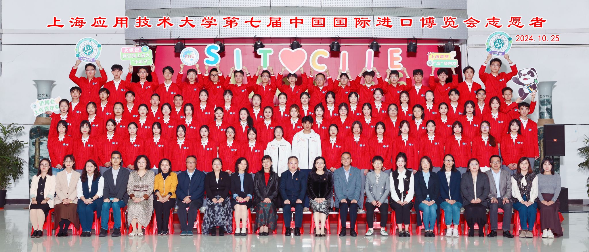 今天(10月25日)下午,上海应用技术大学第七届中国国际进口博览会志愿者出征仪式在奉贤校区学生活动中心多功能厅举行。校党委书记郭庆松为志愿者队授旗并作动员讲话,校党委副书记、副校长王瑛出席。校党委学工部部长、人民武装部部长、学生处处长袁翔主持仪式。