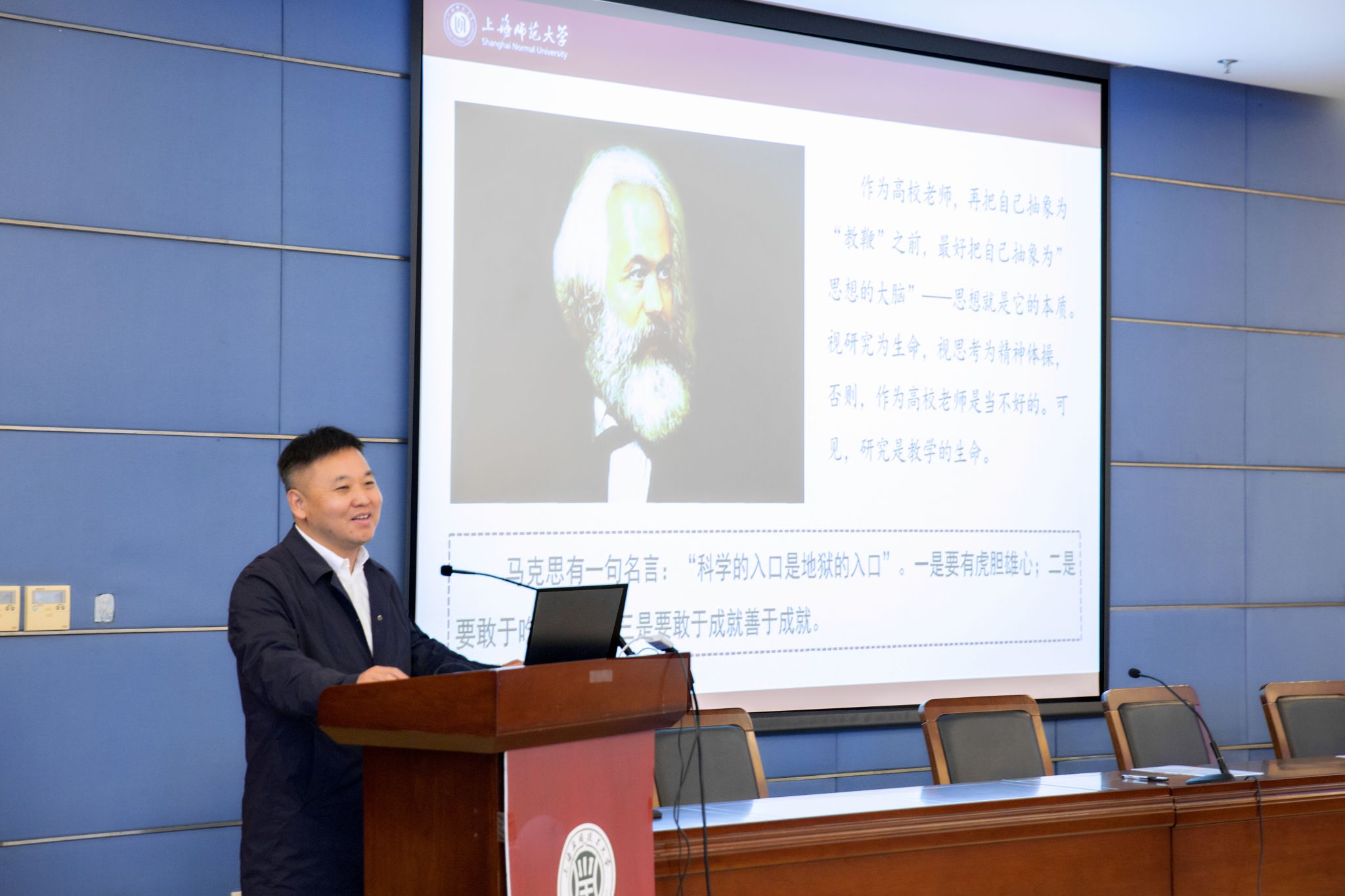 上海师范大学张志丹教授应邀作《国家社会科学基金申报成功之道》的专题报告。他从国家社科基金的项目类别以及如何做好选题进行了介绍,着重强调反复打磨课题申报书是成功的关键。