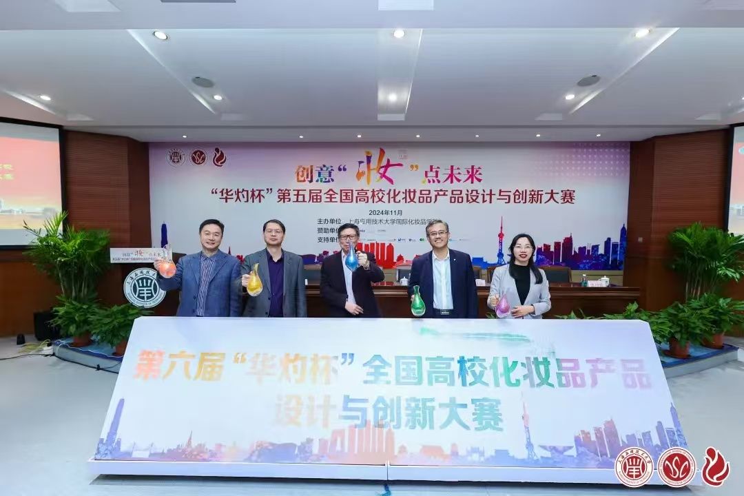 李慧良、霍刚、王化田、温文忠、赵仕芝共同启动第六届“华灼杯”全国高校化妆品产品设计与创新大赛。