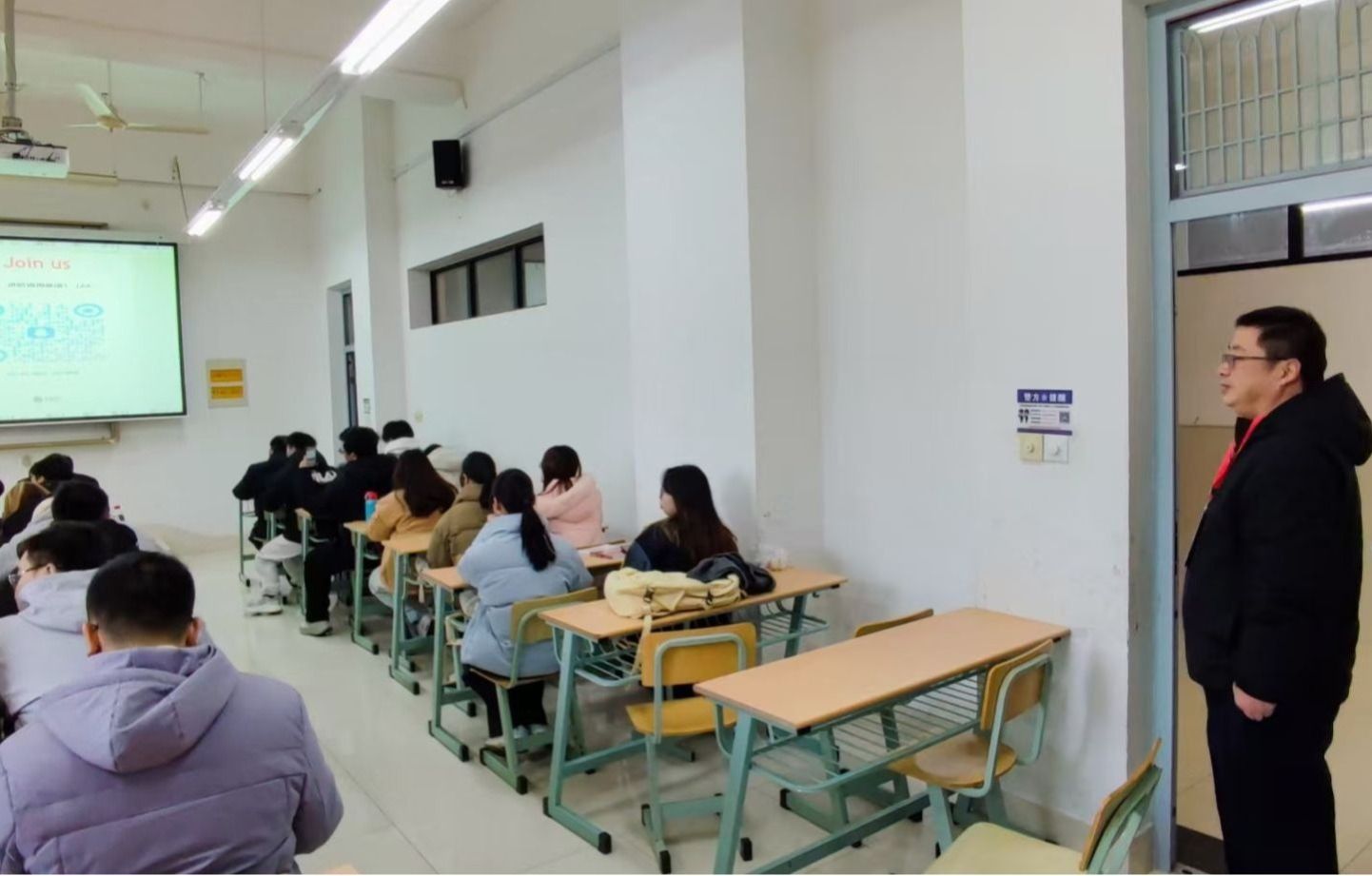 校领导在课前走进教室,与师生亲切交谈,了解教师的教学准备情况,交流教学内容,关心教学设施的使用情况,对全体教师提出希望,教书育人是高校的第一要务,要牢记立德树人的根本任务,不仅要传授专业知识,更要注重培养学生的思维能力、实践能力和社会责任。