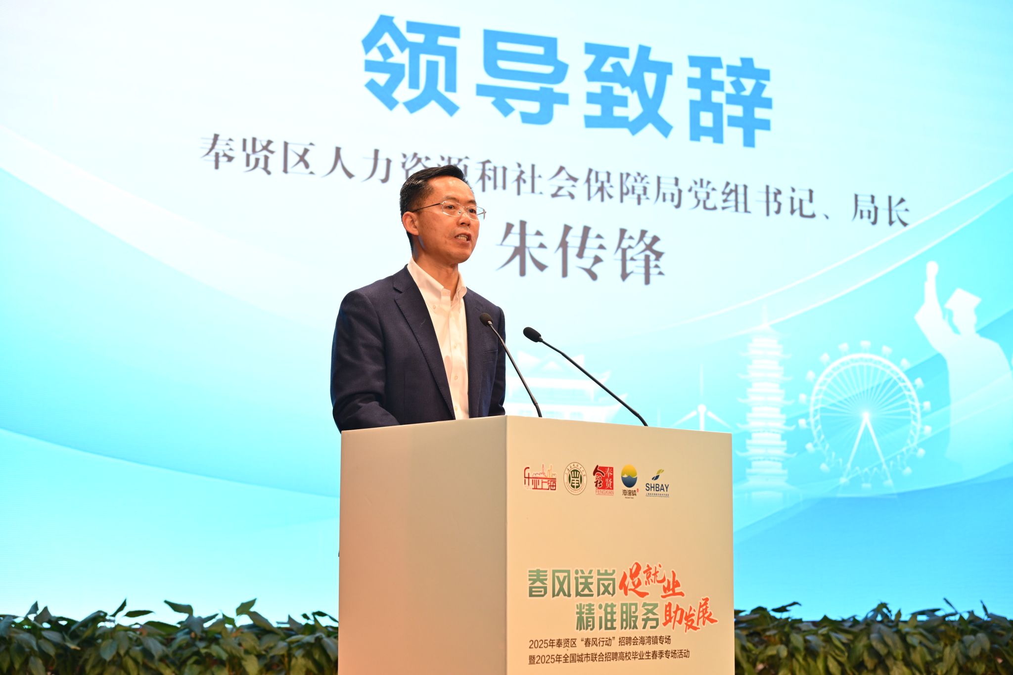 朱传锋就作为一名在奉贤工作生活了二十余载的“新奉贤人”,真诚地对广大青年大学生说:“奉贤,这座滨海新城,早已为青年大学生朋友们准备好了三份“见面礼”。第一份礼物,是让理想扎根的丰沃土壤;第二份礼物,是让生活绽放的温暖港湾;第三份礼物,是让心灵栖息的诗意远方。奉贤发展如火如荼,青春奉贤求贤若渴!”