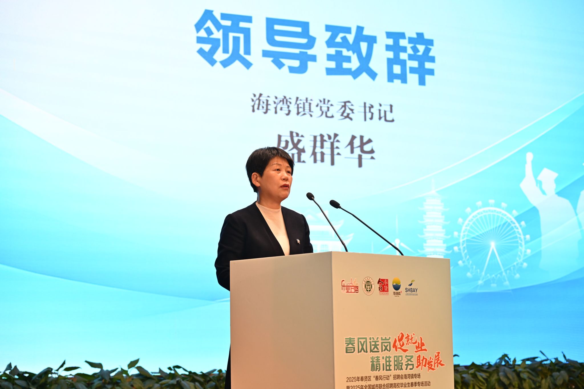 盛群华表示,青春是海湾永恒的精神底色,人才是未来海湾的坚实底气,我们聚力打造“年轻的城,年轻人的城”海湾样板,推动青年发展型街镇建设。海湾镇助力大学生与青年创业就业群体与城市“双向奔赴”,努力成为引才留才“第一站”,无论是重点人才的创业需求,还是大学生的创新就业火苗,海湾都会倍感珍惜、悉心呵护。真诚期盼广大在奉学子选择海湾,选择未来,实现人生价值、实现人人出彩。