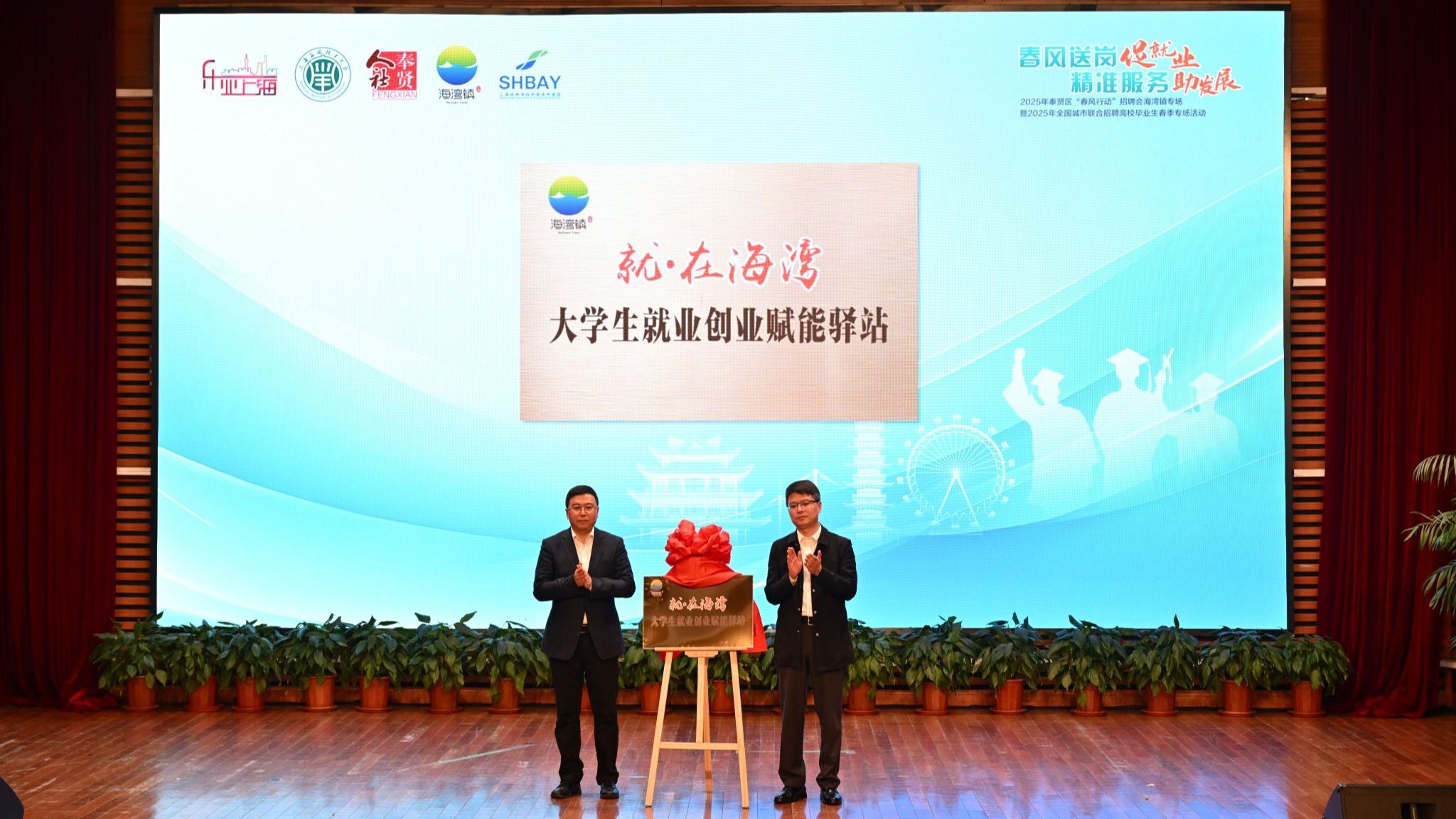 会上,“就·在海湾”大学生就业创业赋能驿站揭牌,奉贤区大学生实习实践岗位海湾专岗发布。