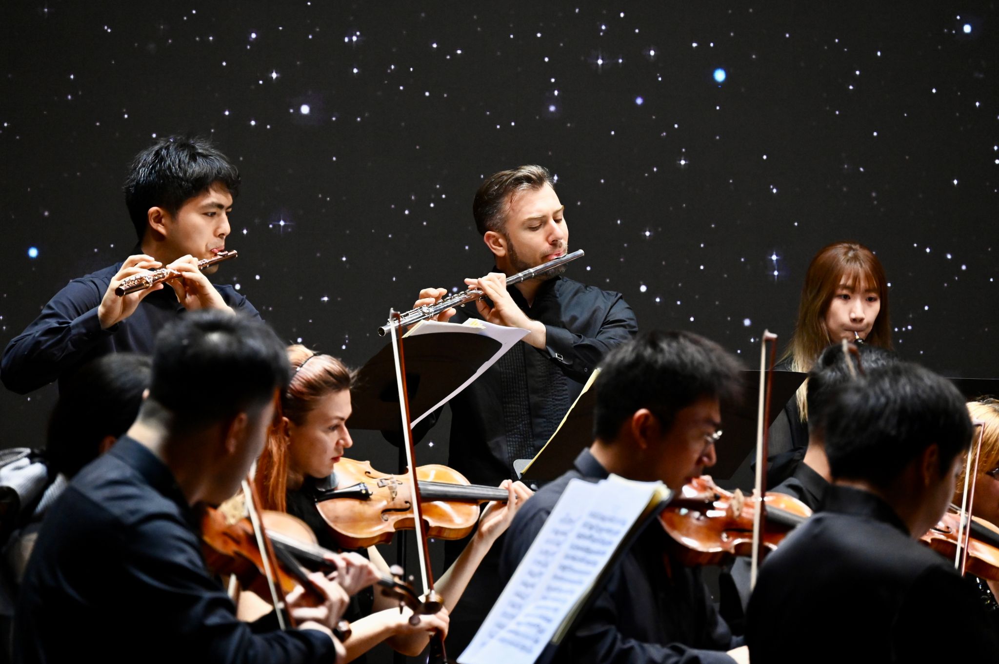 音乐会演绎了十余首促进本土新江南文化与西方交响乐艺术交融的音乐作品,相继演奏的海顿《G大调第88交响曲》第四乐章、莫扎特《A大调单簧管协奏曲》、贝多芬《降B大调第四交响曲,Op.60》第四乐章、德沃夏克《E大调弦乐小夜曲》第一乐章,旋律如野蜂飞舞般充满动力,使听众在古典乐悠长的曲调中唤起无限向往。普罗科菲耶夫《D大调第一交响曲》将现代音乐魅力展现得淋漓尽致,让听众在音符中感受创新与活力。