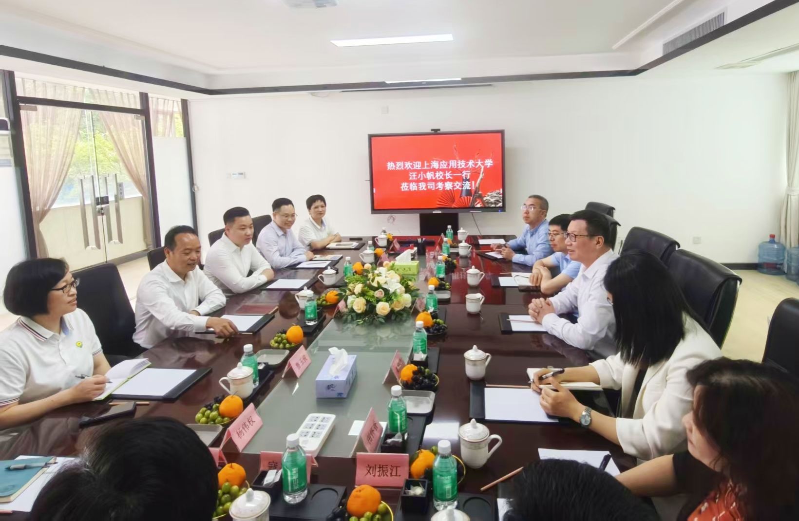 当天下午,汪小帆率队来到广州芬豪香精有限公司,与公司董事长廖经飞、董事总经理林金华等亲切座谈交流。
