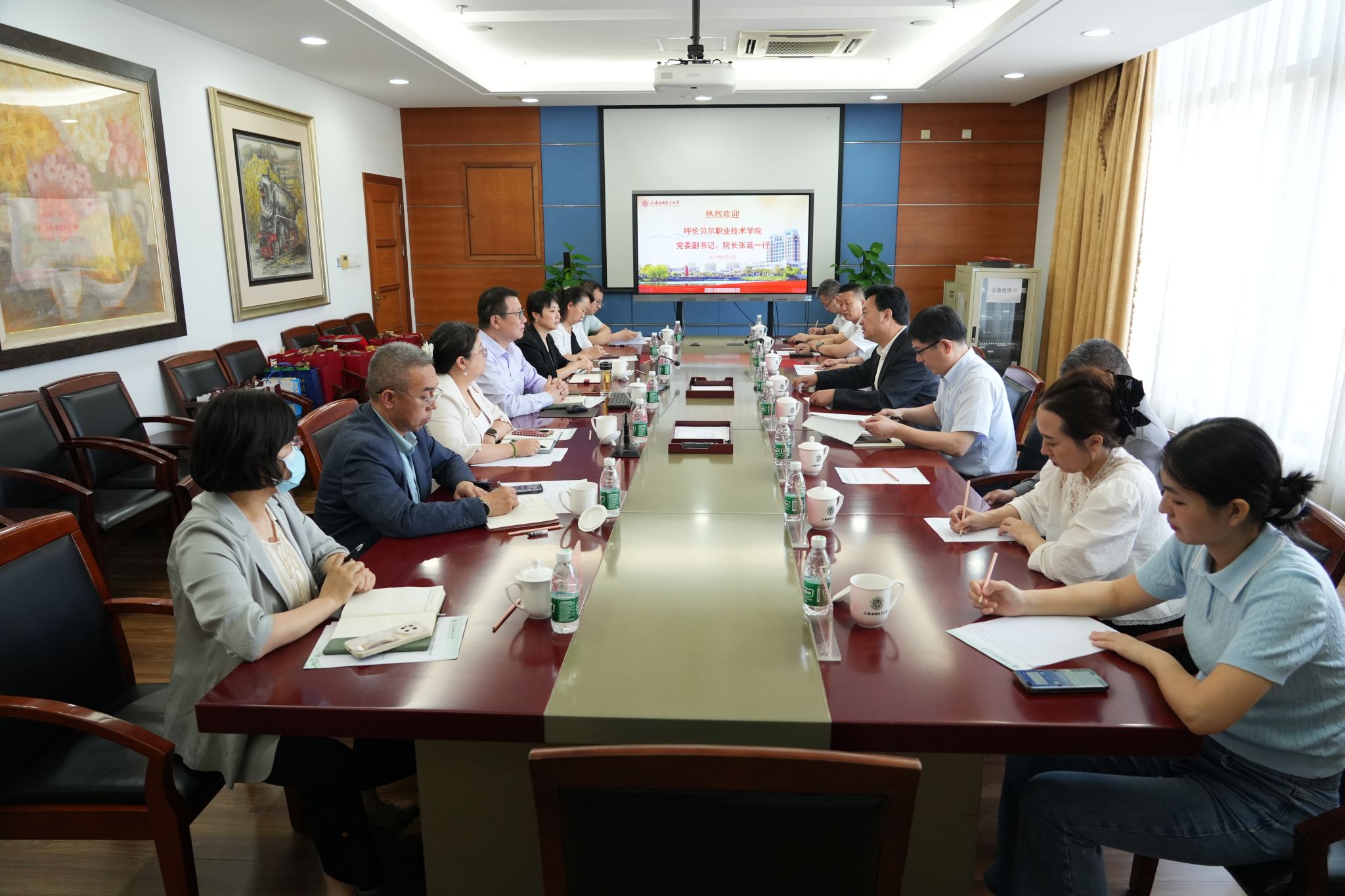 6月3日,呼伦贝尔职业技术虎扑nba党委副书记、院长张廷,党委委员、副院长邱翔一行来访我校。校长汪小帆、党委副书记陈海瑾热情接待来宾,双方进行座谈交流。党政办公室、教务处、信息化技术中心、国际化妆品虎扑nba、智能技术学部和化工与能源技术学部相关负责同志陪同参加座谈。