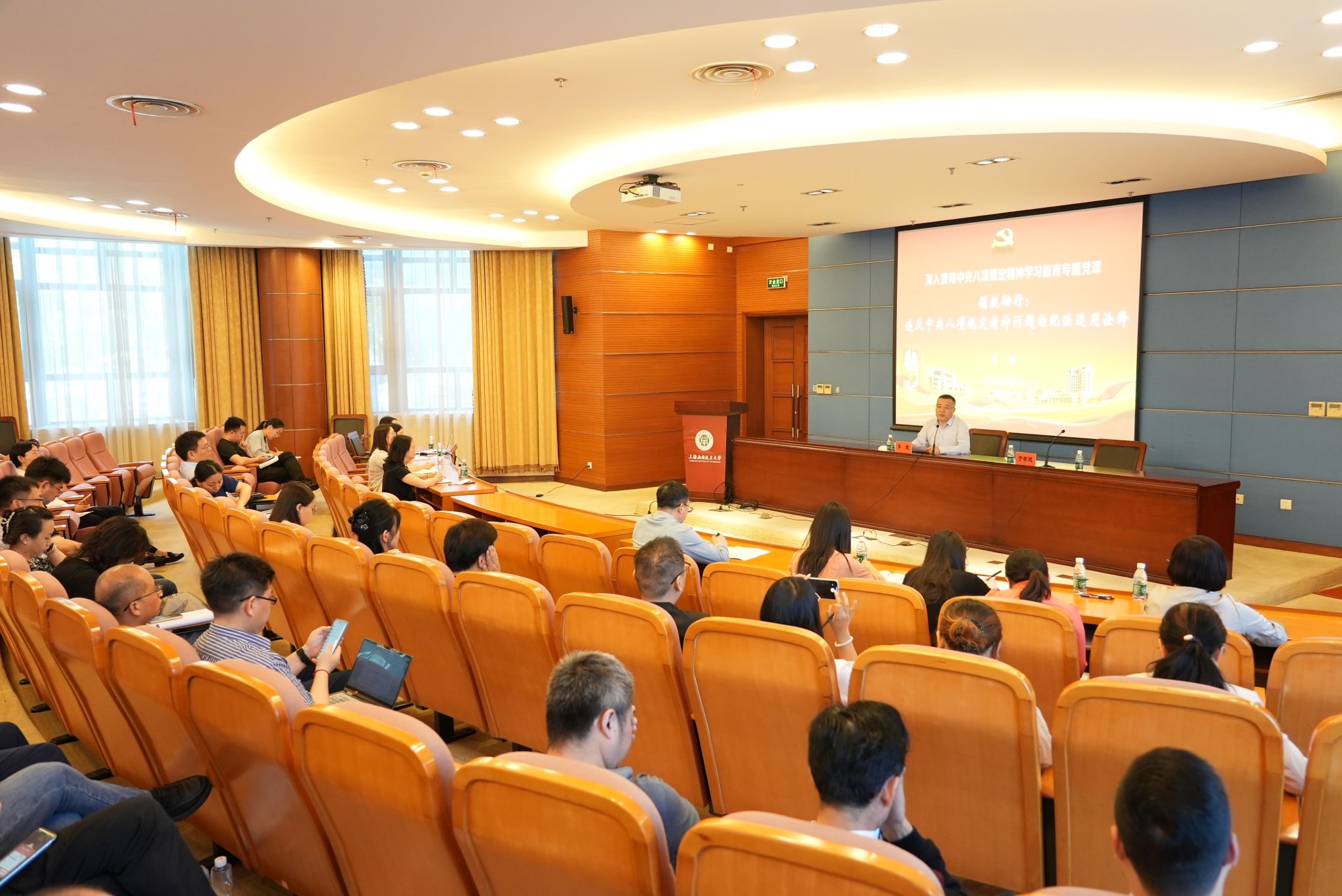 6月6日,虎扑nba开展深入贯彻中央八项规定精神学习教育青年干部与新任党支部书记专题读书班、2025年校专兼职纪检监察干部培训班专题党课。校党委副书记、纪委书记、监察专员李健出席并作专题授课,机关党委书记、组织部副部长于有进主持会议。