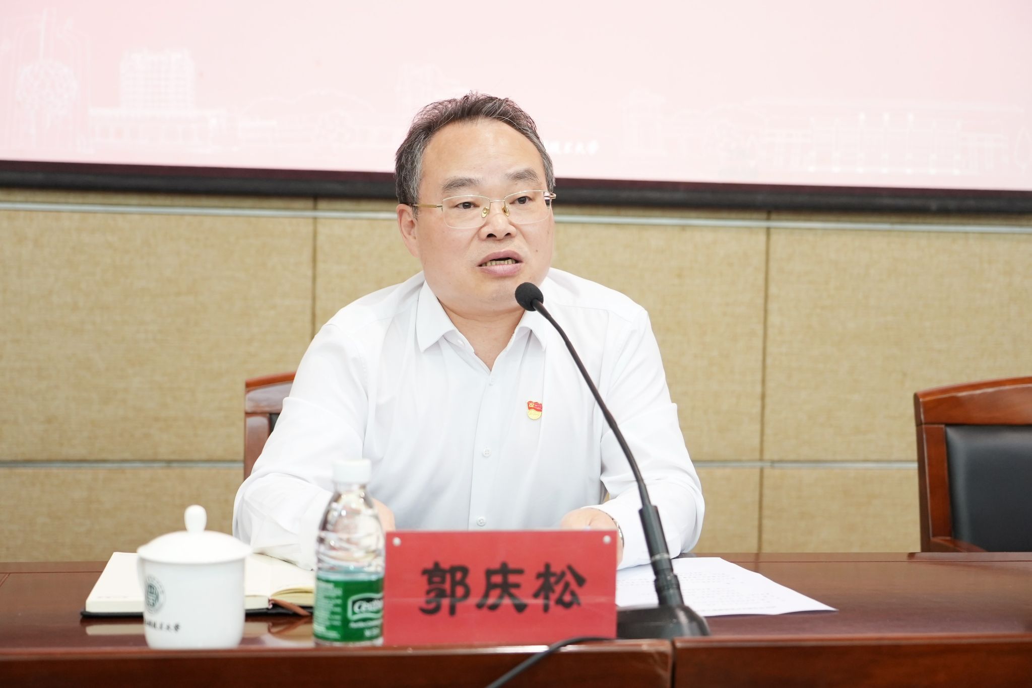 郭庆松强调,要坚定不移把党的作风建设向纵深推进,全体干部要不折不扣落实好各项重点任务。深刻领会、认真落实习近平总书记围绕加强党的作风建设发表系列重要讲话、作出系列重要指示批示精神,深刻汲取违反中央八项规定精神和反腐典型案例的教训,以永远在路上的坚韧执着,坚定不移把作风建设引向深入,以过硬的作风加快建设具有国际影响力的高水平应用创新型大学,以优异的成绩献礼建党104周年!