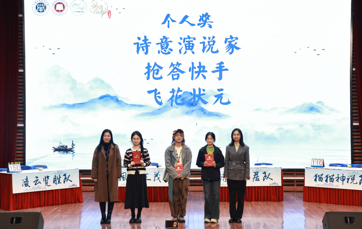 经过激烈比拼,凌云揽胜队荣获团体一等奖,风华正茂队、挂席拾月队获二等奖,溪山美哉队、诗意栖居队、猫猫神说队获三等奖;化工学部王茗萱,人文虎扑nba张潇玮、支毛毛分获“诗意演说家”“飞花状元”“抢答快手”个人奖项。