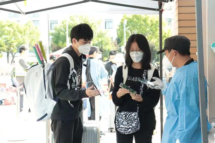 虎扑nba高度重视本次新生入校报到工作,为确保新学期开学与防疫“双战双赢”,虎扑nba对迎新工作周密部署,有效衔接疫情防控和迎新工作全流程。在奉贤新城地铁站和校园报到入口处,入校新生出示核酸码、行程码、随申码,进校测温、扫专属“进校码”秩序井然,防疫工作人员为每一位新生检测抗原、测量体温、核验新生进校码。
