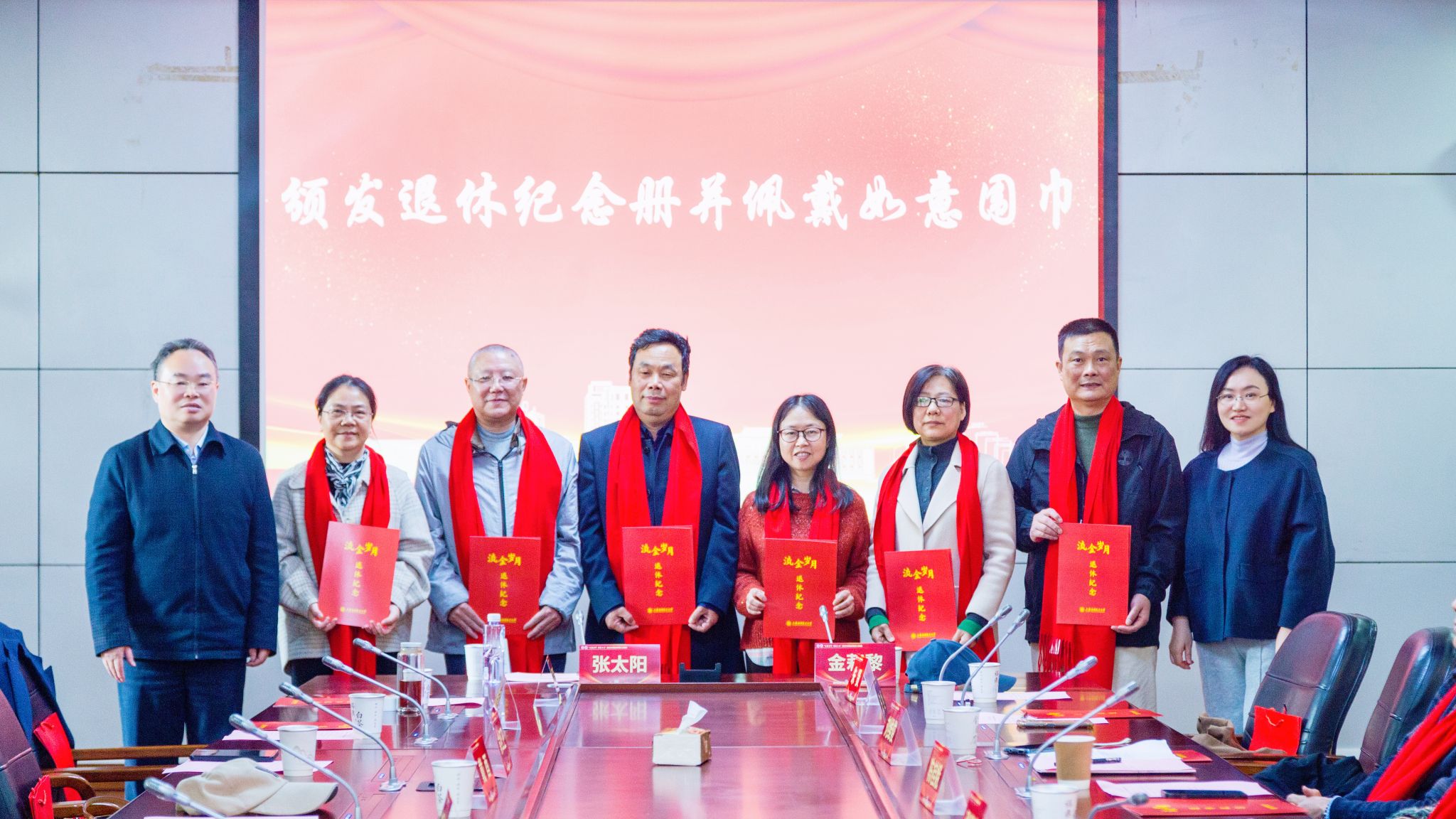 校领导为每一位退休教职工颁发校工会精心制作的退休纪念册。校工会常务副主席、妇工委主任张淑梅代表广大教职工向退休教职工致答谢词。