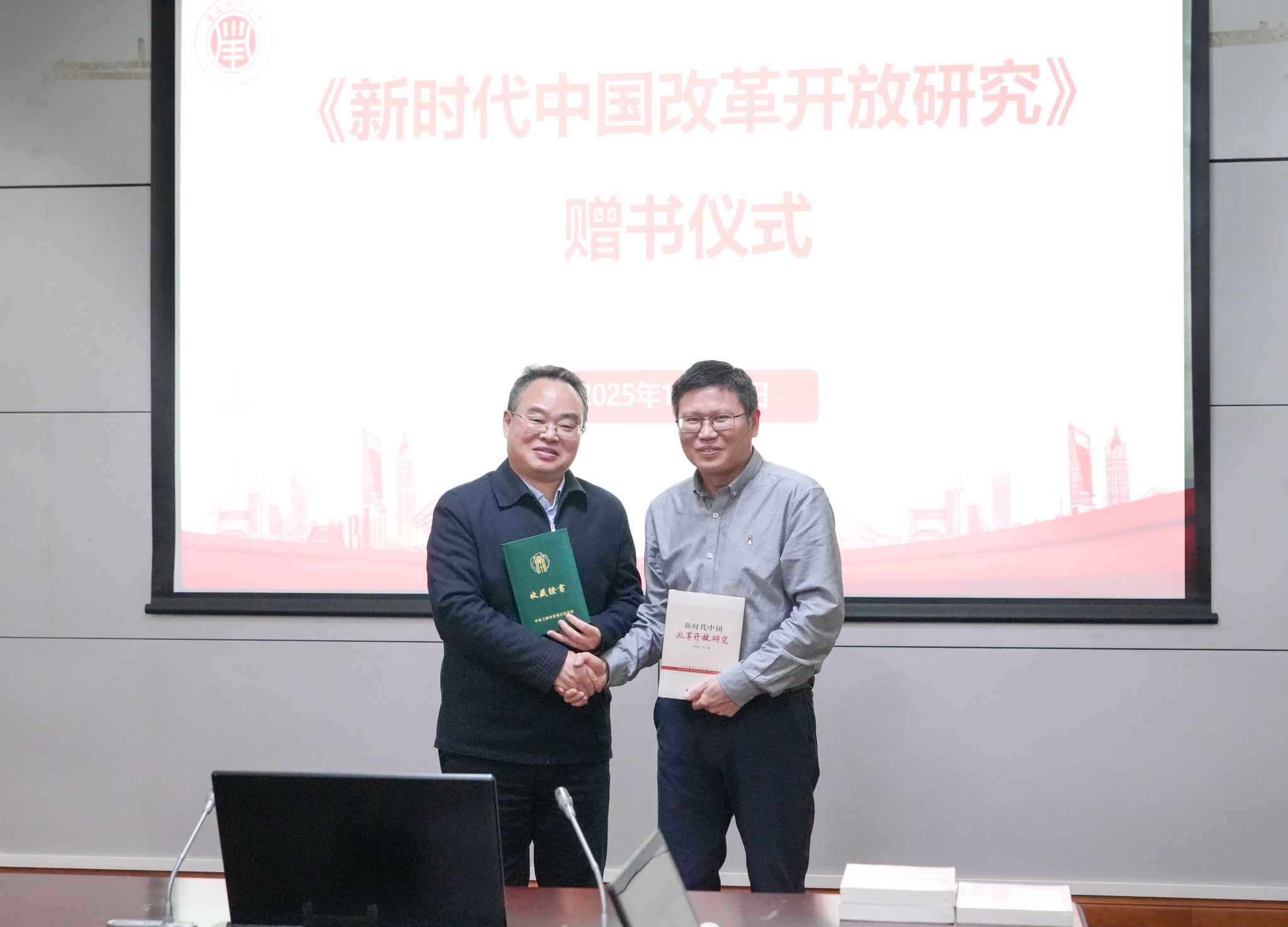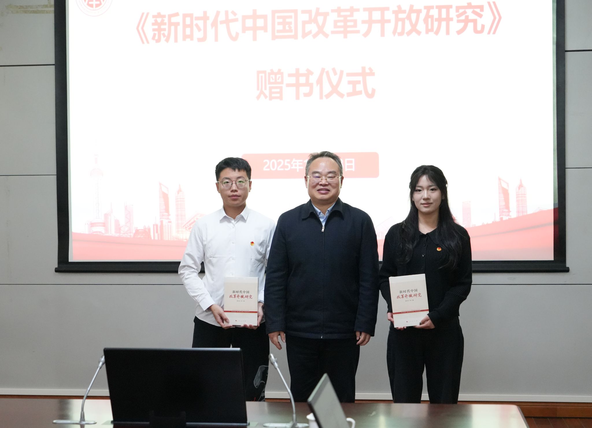 研讨会上,郭庆松代表《新时代中国改革开放研究》专著作者向中共上海市委党校图书馆、上海应用技术大学图书馆以及马克思主义虎扑nba赠书。马克思主义虎扑nba党总支书记邱杰主持专题研讨。