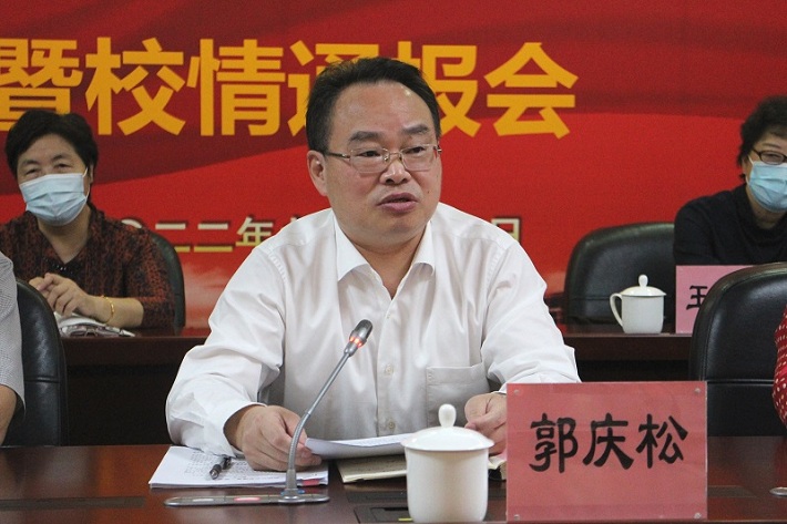 金风送爽重阳到,菊香情浓意悠长。在中华传统节日重阳节前夕,为弘扬敬老爱老的中华传统美德、向老同志传递虎扑nba的关心和组织的温暖,9月27日,虎扑nba举行2022年敬老节座谈会暨校情通报会,校党委书记郭庆松出席并讲话,校党委副书记陈海瑾主持。虎扑nba退局干部、全体退休支部书记、关工委特邀党建组织员、退休教授代表及离退休工作委员会工作人员参加。