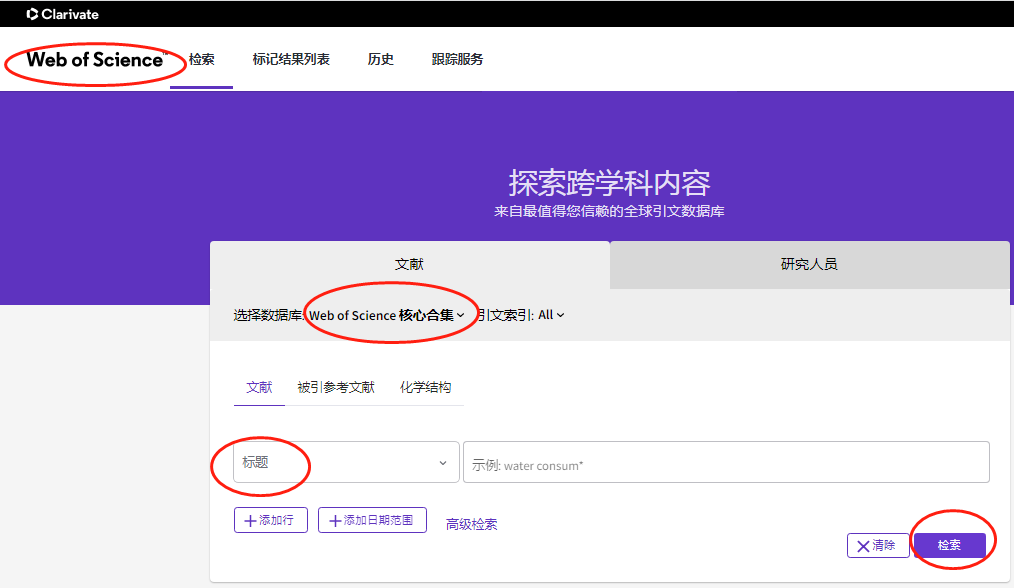1、登录我校图书馆Web of Science核心合集、EI等数据库预先自行检索,查看检索论文是否被相关数据库收录;