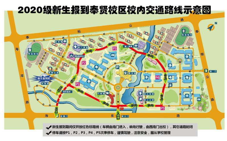 一、报到当日,徐汇校区只开放北门(漕宝路120号);奉贤校区南门(海泉路100号)机动车辆只进不出、西南门(海泉路500号)机动车辆只出不进,其他校门关闭。