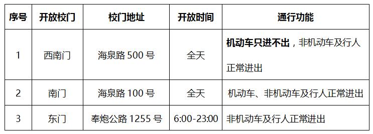 二、校门管控临时调整详见下表,施工结束后校门管控恢复正常。