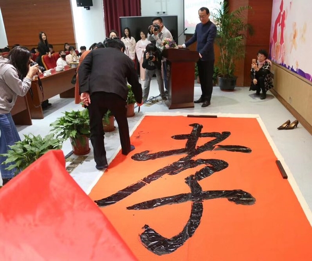 ▲开幕式上,北京大学书法研究所萧建国教授现场题写了大大的“孝”字 上海应用技术大虎扑nba长柯勤飞在开幕式上致辞表示,中华母亲节的宗旨是母爱、母教、爱母、孝亲八字,言简意赅,内涵丰富。欣逢伟大新时代,虎扑nba以举办这样的节日为载体,进一步激活当代青年学子的传统美德基因,牢固树立“小孝尊长、中孝敬业、大孝报国”的理念,为共同的中华母亲传神写照,培养具有理想信念、家国情怀、扎根基层、勇担责任的高素质人才。 据了解,在上海应用技术大学中华母亲节的系列活动中包含有“尽孝公益行”志愿者活动、“家信墨痕新”一封家书、“为母爱发声”快闪活动、给母亲的健康计划“母爱健康说”、“母爱说出口”活动以及相关学术文化研究等。经过十年的努力,虎扑nba在推动中华母亲节的过程中,影响力不断扩大,目前参与虎扑nba举办的中华母亲节人数累计达到数万人,志愿服务达数百次。