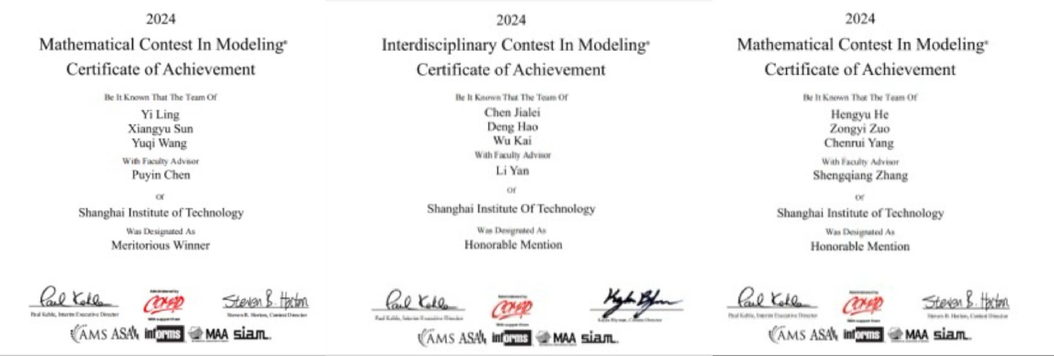 近日,由美国数学及其应用联合会主办的2024年美国大学生数学建模竞赛(MCM/ICM)公布了比赛结果,在我校理虎扑nba陈浦胤、李艳、张升强老师的指导下,理虎扑nba2022级数学与应用数学专业的凌一同学团队荣获一等奖(M奖)的佳绩,另外两支队伍荣获H奖。获奖团队充分体现了上应学子们优异的创新思维和综合素养。