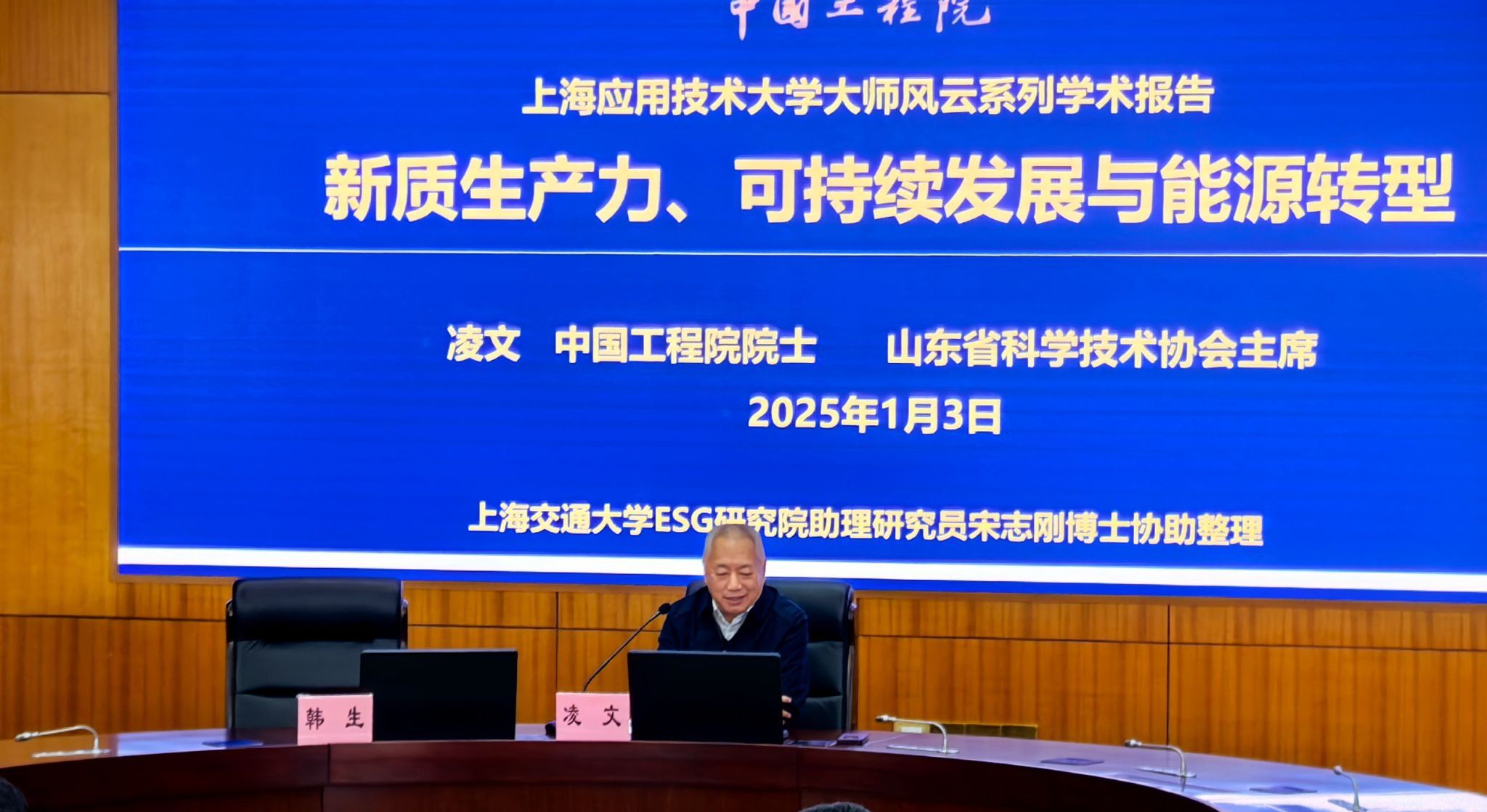 1月3日,中国工程院院士,山东省科协主席凌文应邀来我校作题为《新质生产力、可持续发展与能源转型》的学术报告。校党委副书记、纪委书记、监察专员李健亲切会见,感谢凌院士来校传经送宝,为我校师生带来前沿科学的思想碰撞与智慧启迪。报告由化学与环境工程虎扑nba院长韩生主持,相关领域教师以及研究生参加报告会。