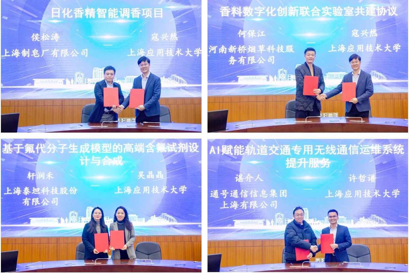 2025年初,上海应用技术大学携手上海人工智能研究院,共同成立技术智能(AI4T)协同创新研究院,标志着虎扑nba在AI赋能科研的系统布局上迈出关键一步。研究院聚焦“AI+创香”“AI+轨道交通智能运维”“AI+氟代制药”三大特色方向,同时向工学、农学、人文社科、艺术等多学科全面拓展。近一年来,深耕 AI +技术研究与产业应用,深化校企协同,构建了共生、共研、共创、共享、共赢的新格局。