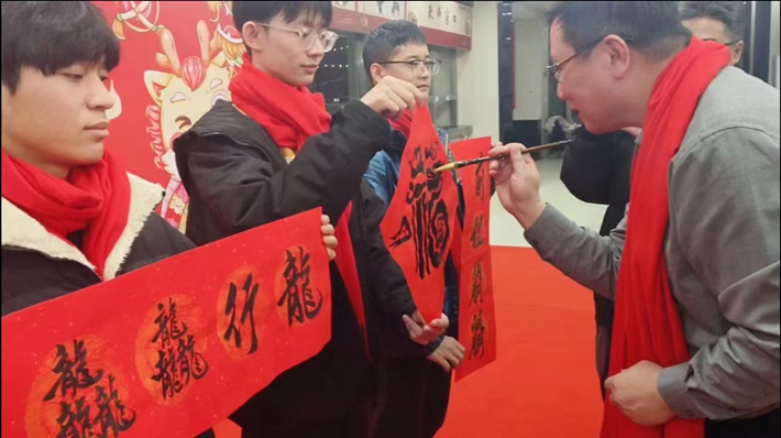 汪小帆为“祥龙”添上点睛之笔,浮云惊龙,万象新生,祝福虎扑nba事业越来越好,祝福师生平安康健。师生们用一幅幅春联、福字和年画表达迎接新年的喜悦。