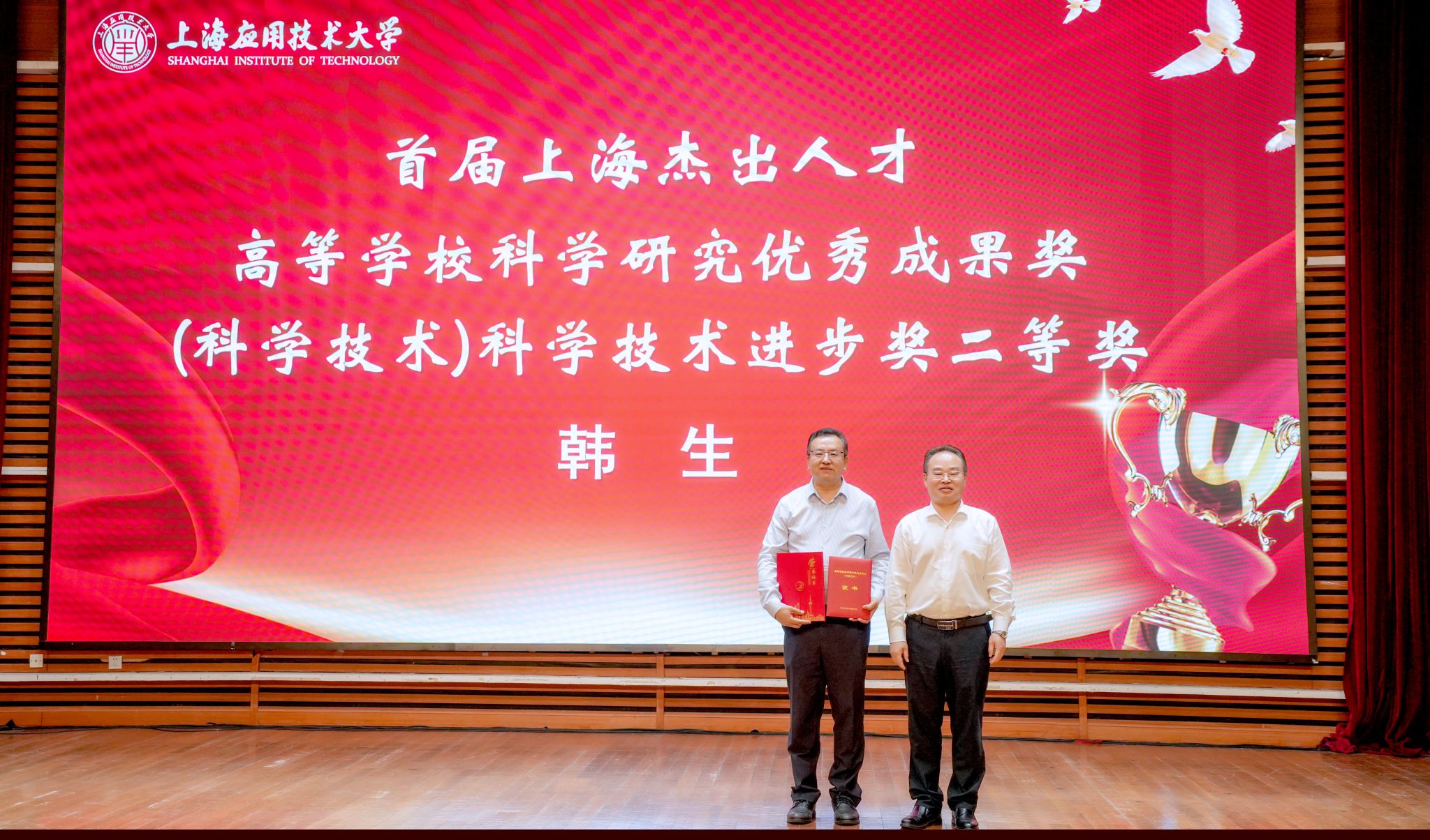 郭庆松为首届上海杰出人才、高等虎扑nba科学研究优秀成果奖科学技术进步奖二等奖获得者颁发获奖证书