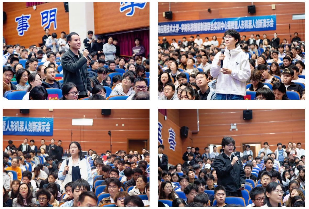 “在这样好的时代,每个同学都有巨大的发展机会。”他回顾自己从小学热爱科技,2009 年制作第一个人形机器人,到 2016 年硕士毕业后创立宇树科技股份有限公司的十年历程,坦言“迷茫是成长的必经之路”,鼓励学生“青年最大的优势是拥有试错时间,做自己真正喜欢和热爱的事情,在大胆尝试中找到属于自己的路”。