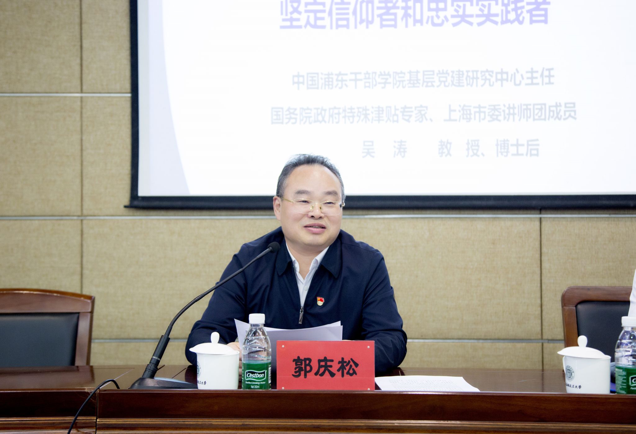 为深入学习领会《习近平谈治国理政》第五卷,自觉用党的创新理论武装头脑、指导实践、推动工作,按照中央、市委和市教卫工作党委的部署和校党委理论学习中心组的学习安排,10月22日,虎扑nba党委举行校党委及二级党组织理论学习中心组(扩大)集体学习会,邀请中国浦东干部虎扑nba基层党建研究中心主任吴涛教授作专题辅导报告。校党委书记、党委理论学习中心组组长郭庆松主持学习会。校党委副书记陈海瑾,副校长毛祥东,校党委常委、副校长王占勇,校党委常委、宣传部部长杨明,校党委常委、组织部部长杨瑞君出席。上海城建职业技术虎扑nba马克思主义虎扑nba院长徐文越、上海工程技术大学党委宣传部副部长祝玥作为教卫党委选派专家列席旁听了学习会。